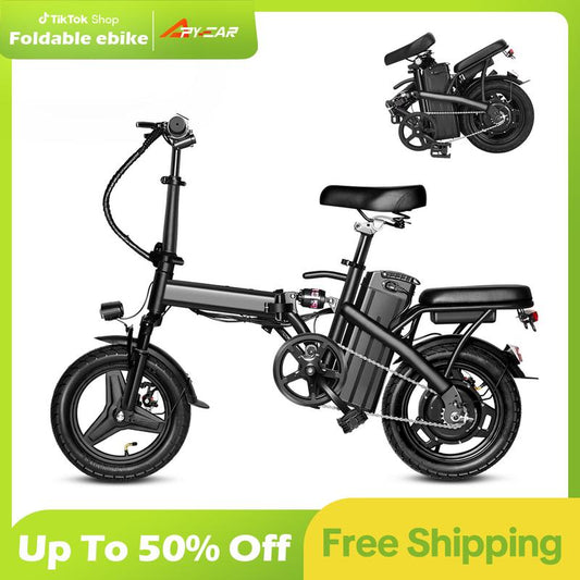 [Outdoorfun] 14Inch Folding Electric Bike 48V12Ah High Speed E Bike Air Tiresfront and Rear Disc Brake Design LED Range 32Miles Portable Electric Bicycle