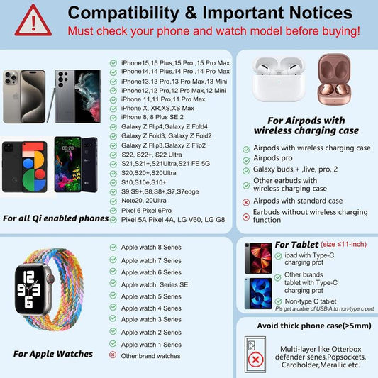4-In-1 Wireless Charging Station with Wired Ipad Charger | Foldable Multi-Device Charging Stand for Apple - Iphone 16/15/14 Pro Max/13/12/11, Apple Watch Series 8/7/6/5/4/3/2/SE, Airpods 3/2/Pro | Overcharge Protection & Space-Saving Design